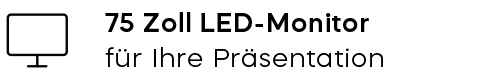 Der Raum ist voll klimatisiert und mit einem großen 75 Zoll LED-Fernseher, Lautsprechern und High-Speed-Internet ausgestattet. Die Anbindung kann vom Laptop über HDMI Kabel oder via USB hergestellt werden.